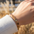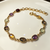 Feine Farbnuancen und edle Materialien verbinden sich in dieser Armkette zu einem harmonischen Schmuckstück mit natürlicher Ausstrahlung. Als Kettenglieder aneinandergereiht, formen oval facettierte Edelsteine aus Citrin, Rauchquarz, Prehnit, Amethyst und Granat eine lebendige Komposition, die bei jeder Bewegung sanft funkelt. Die Armkette wirkt elegant und präsent zugleich. Die warmen Goldtöne der Vergoldung unterstreichen die individuelle Farbigkeit der einzelnen Steine und verleihen dem Schmuck eine feminine, hochwertige Anmutung. Ob als dezenter Farbakzent im Alltag oder als stilvolle Ergänzung zu festlichen Looks – diese Armkette ist vielseitig kombinierbar und zeitlos schön. Ein Schmuckstück, das Natürlichkeit, und Eleganz auf besondere Weise vereint.